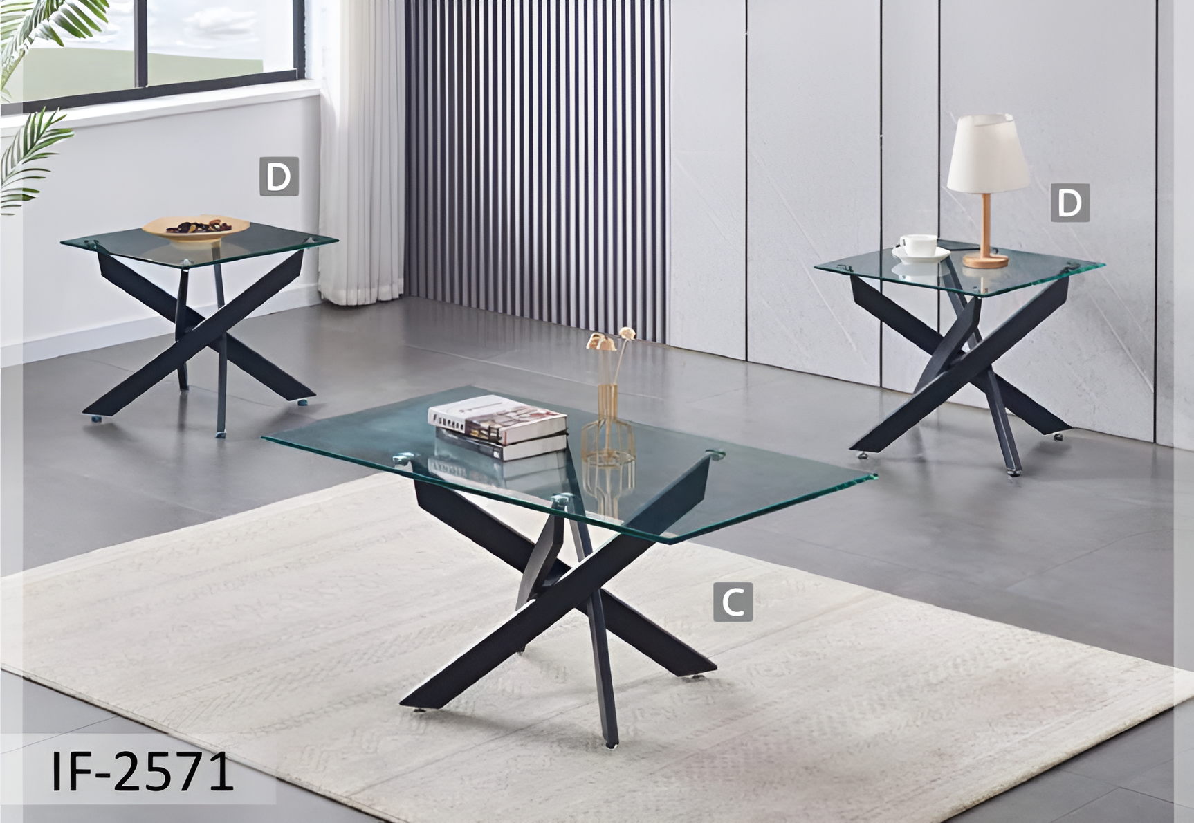 A sleek and bold combo of glass and matte black steel, this contemporary set brings structure and sophistication to any modern space.