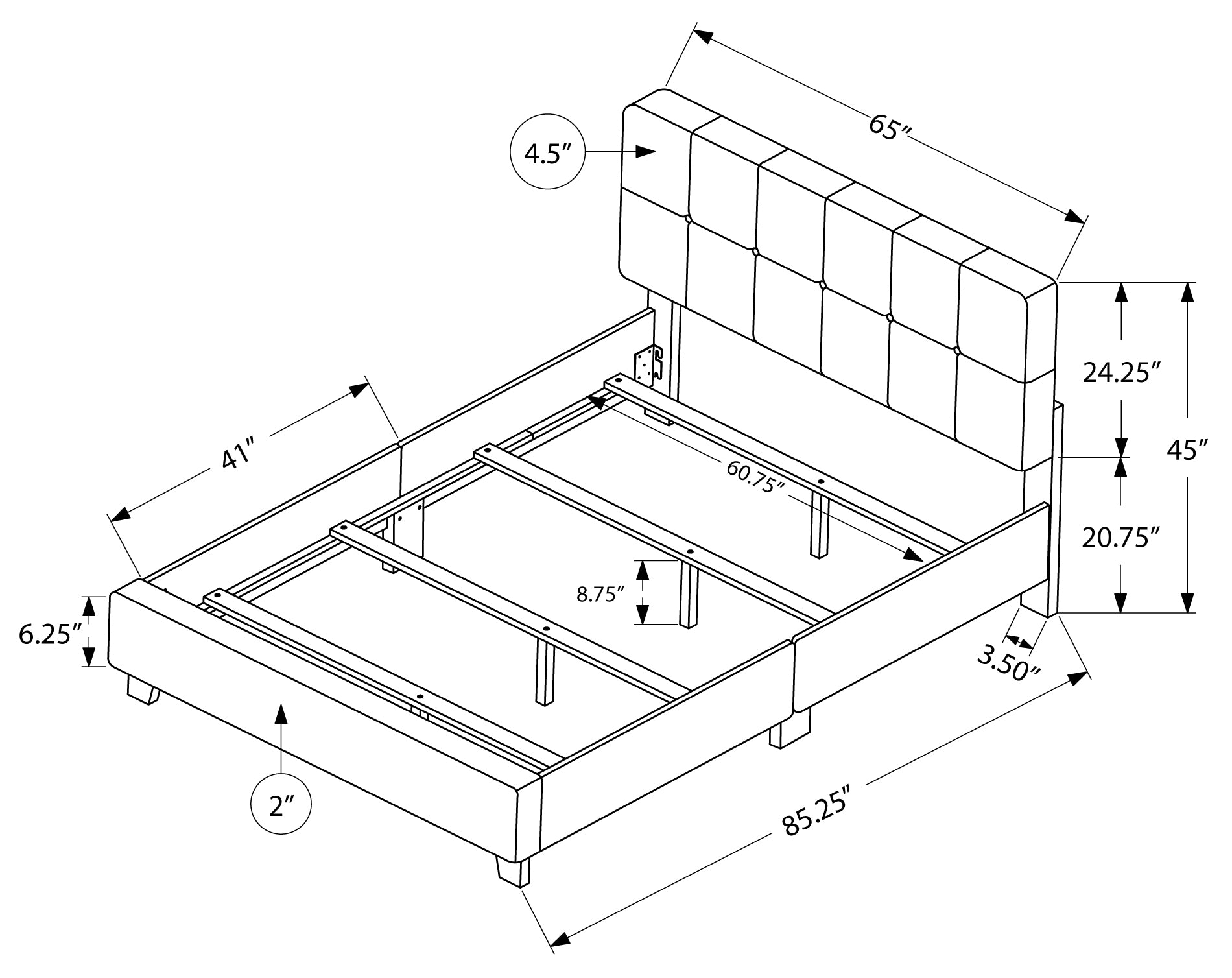 Compatible with a standard queen-size mattress and 2-inch low-profile box spring (not included).