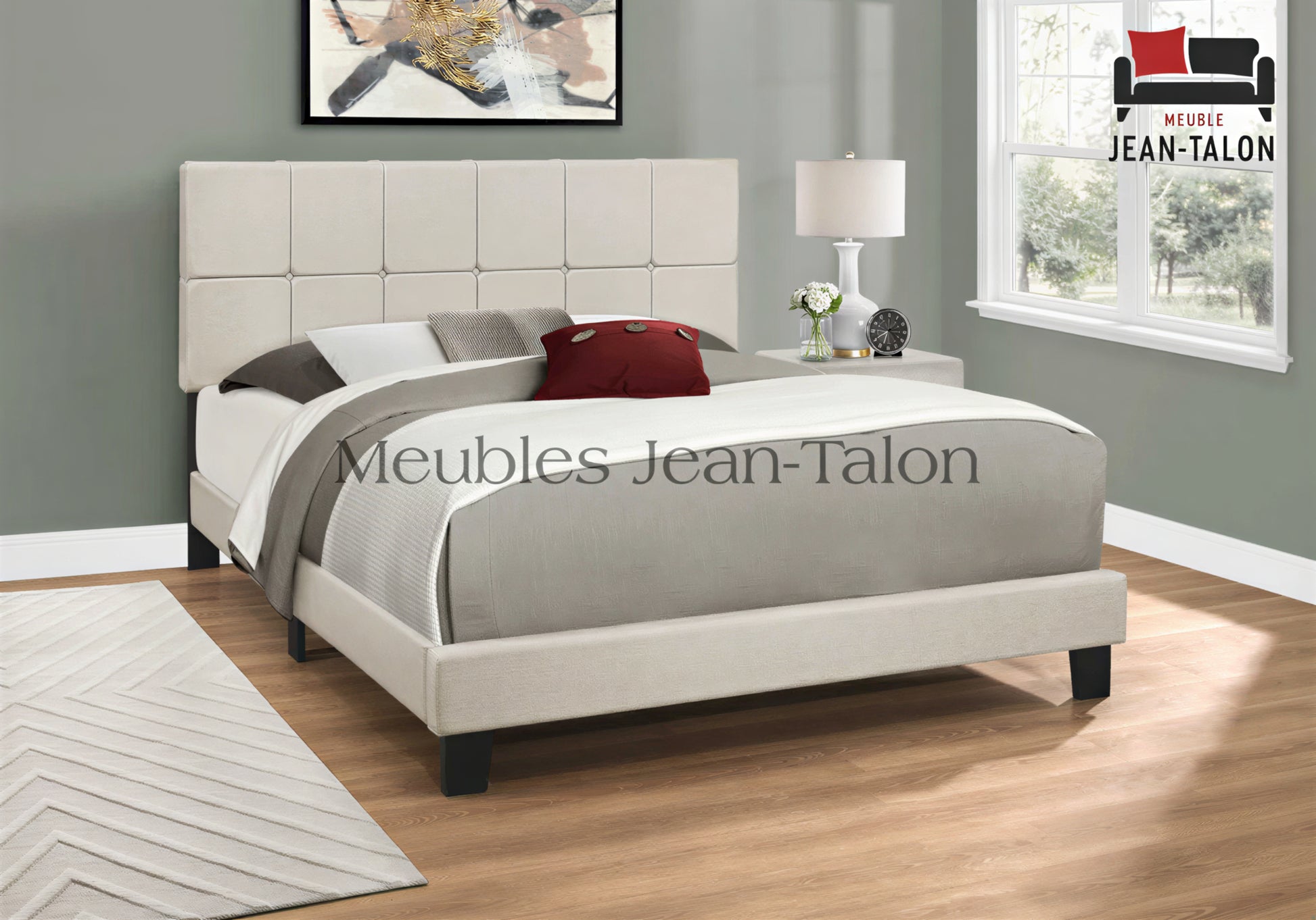 The Avignon™ Upholstered Bed brings a soft, timeless look with a touch of modern elegance. Wrapped in smooth beige linen-look fabric, its padded panel-tufted headboard adds depth and warmth — perfect for creating a calm, cozy bedroom atmosphere. Designed with durability and simplicity in mind, Avignon™ blends comfort, structure, and sophistication in one beautiful statement piece.