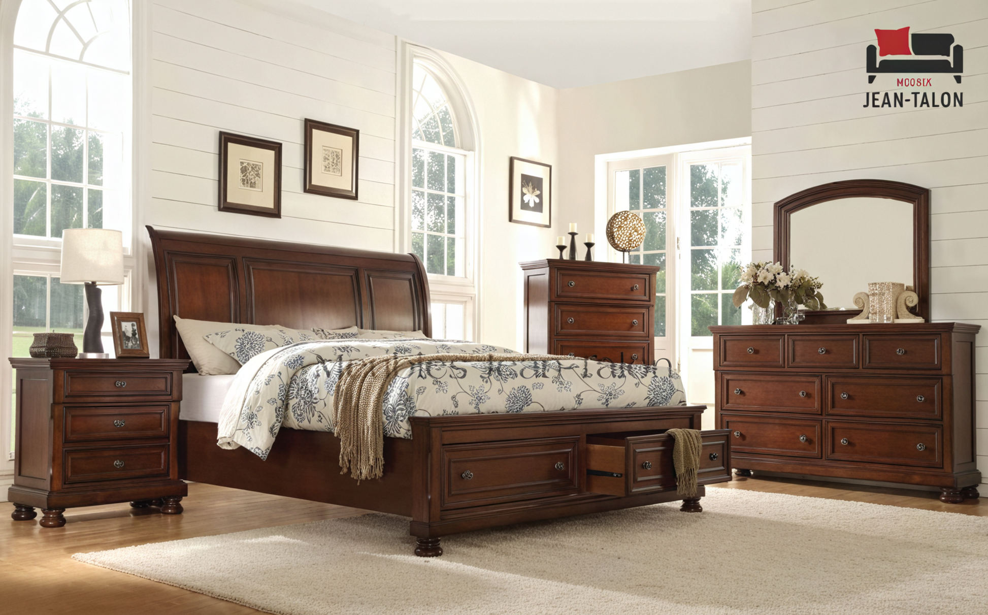 Timeless and versatile, the BALTIMORE 851™ bedroom set blends classic lines with modern practicality. From the elegant sleigh-style headboard to the built-in footboard storage, this set delivers both style and smart space. Whether you’re into rich Cherry or cool Gray, Baltimore makes it feel like home—your way.