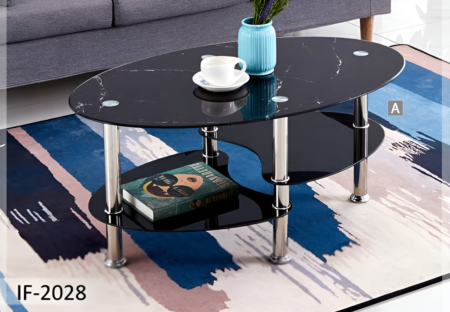 A stylish and functional oval coffee table designed with a sleek marble-glass finish, ideal for modern and contemporary living spaces. Available in black marble and white marble glass options.