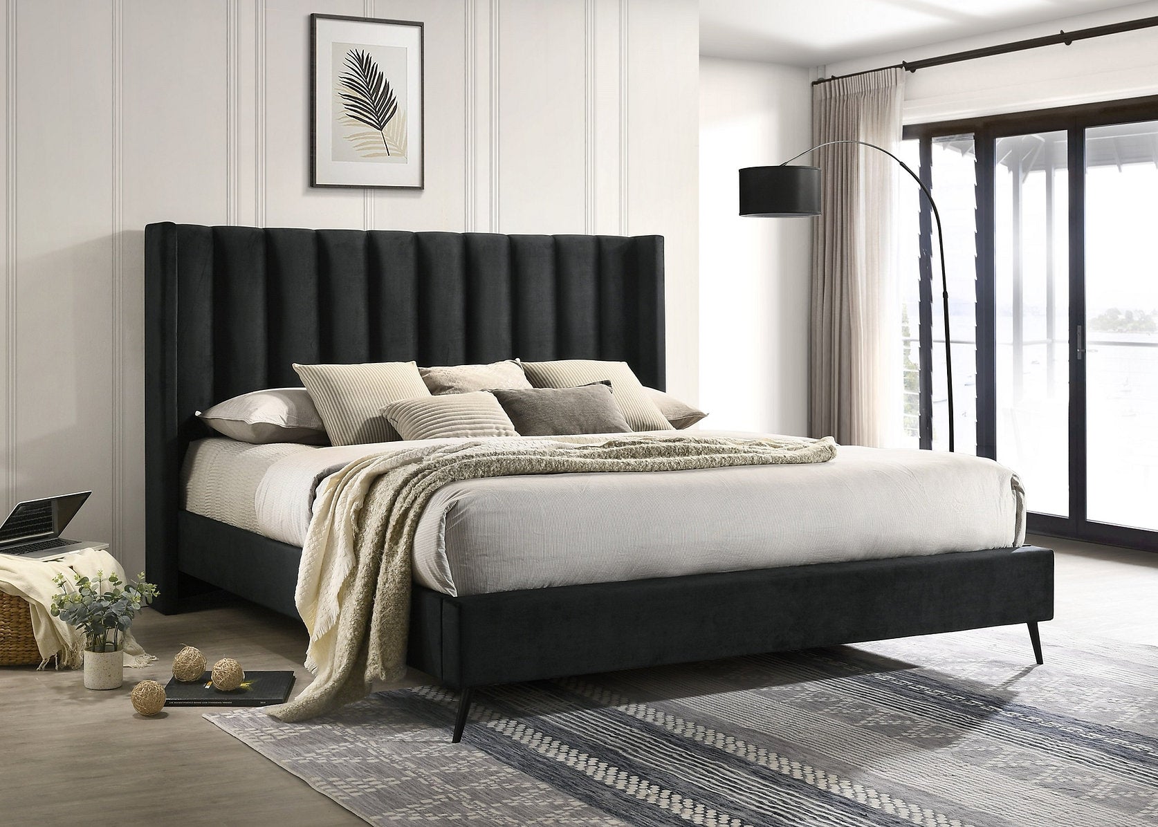 Soft Velvet Modern Style Wing Bed with Deep Vertical Tufting – IF-5231