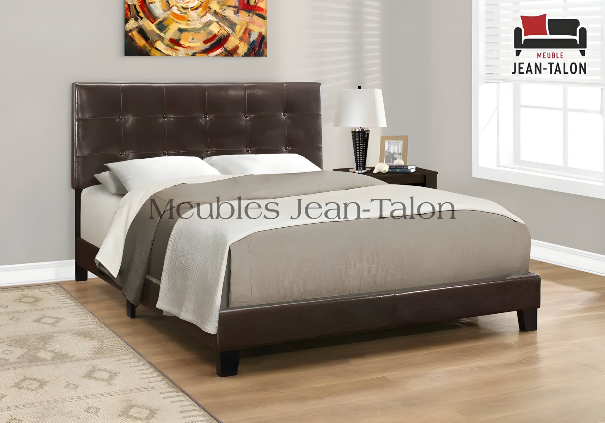 The Vérone™ Upholstered Bed brings refined comfort and timeless sophistication to your bedroom. Wrapped in a rich dark brown leather-look fabric, this bed combines a sleek, tufted headboard with a low-profile silhouette — perfect for modern condos, apartments, or cozy homes seeking a touch of elegance. Durable, stylish, and easy to assemble, Vérone™ transforms rest into pure relaxation.